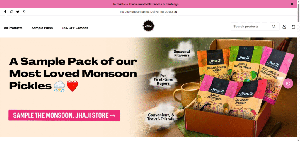JhaJi Store is a women-led startup from Bihar that makes and sells homemade pickles and traditional snacks using family recipes and local ingredients.